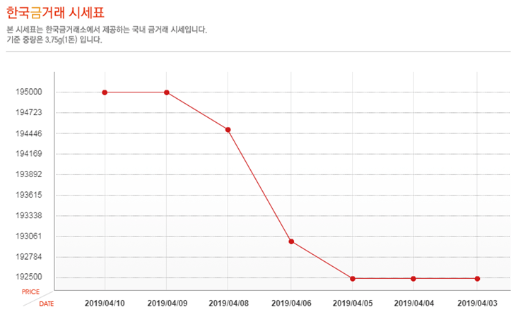 한국금거래소 홈페이지를 통해 좀 더 알아보겠습니다. 한국금거래소 홈페이지에서는 기간별 금시세 변동 추이를 살펴볼 수 있고 금값 뿐만 아니라 백금, 은 시세도 함께 확인할 수 있습니다.